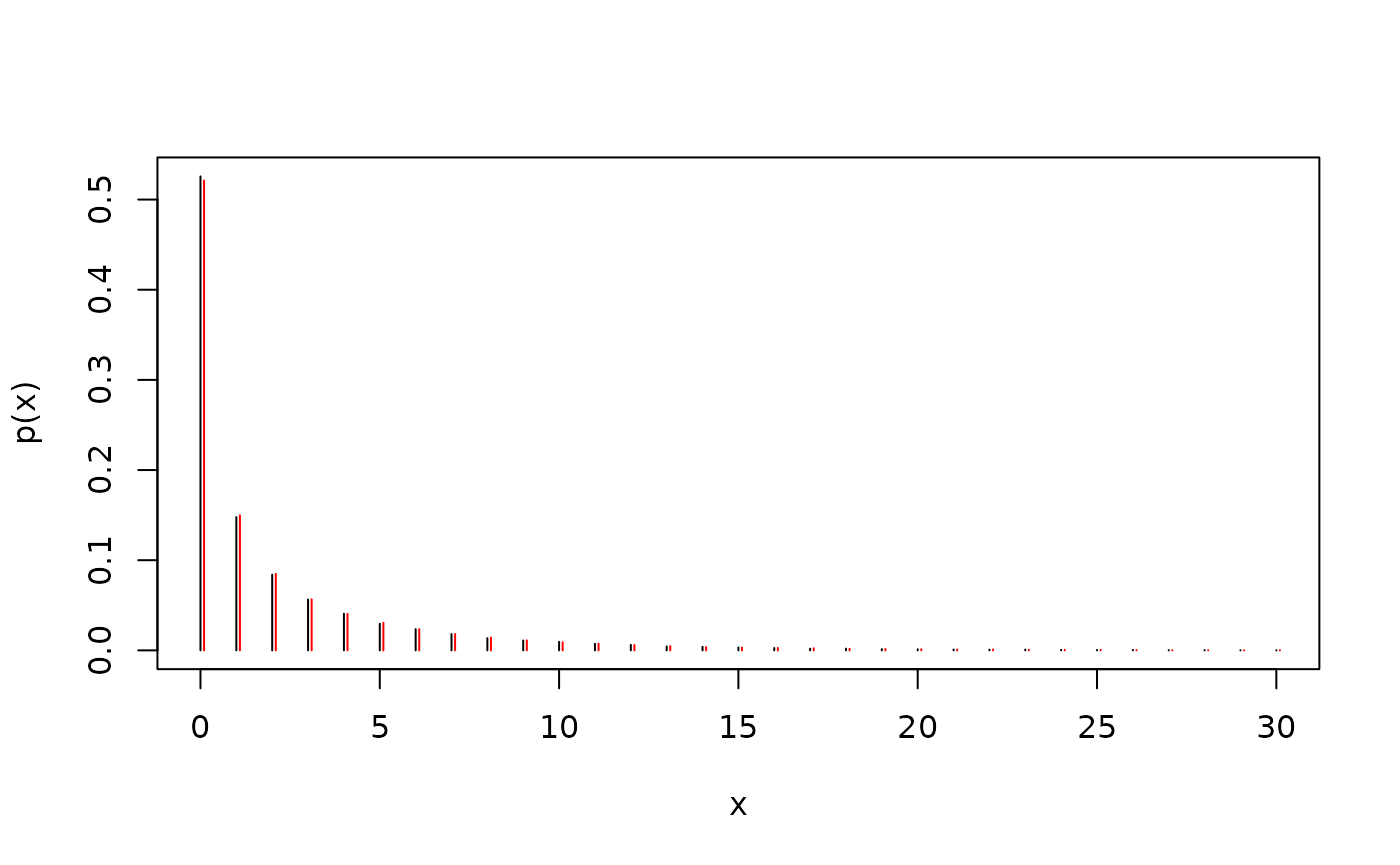 lines(x + 0.1, mf(y, x), type = "h", col = "red")